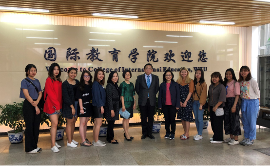 代表团一行还实地参观了学院的办公楼和国际化教室,并看望了在我校学习的两校合作的3+1项目的东方大学学生,亲切地询问他们在永利集团3044的学习和生活情况,鼓励他们多与中国同学交朋友,多参与校园活动和中国文化体验活动,希望他们珍惜在中国、在永利集团3044学习的宝贵机会,回国后能够学以致用,促进中泰友好交流。